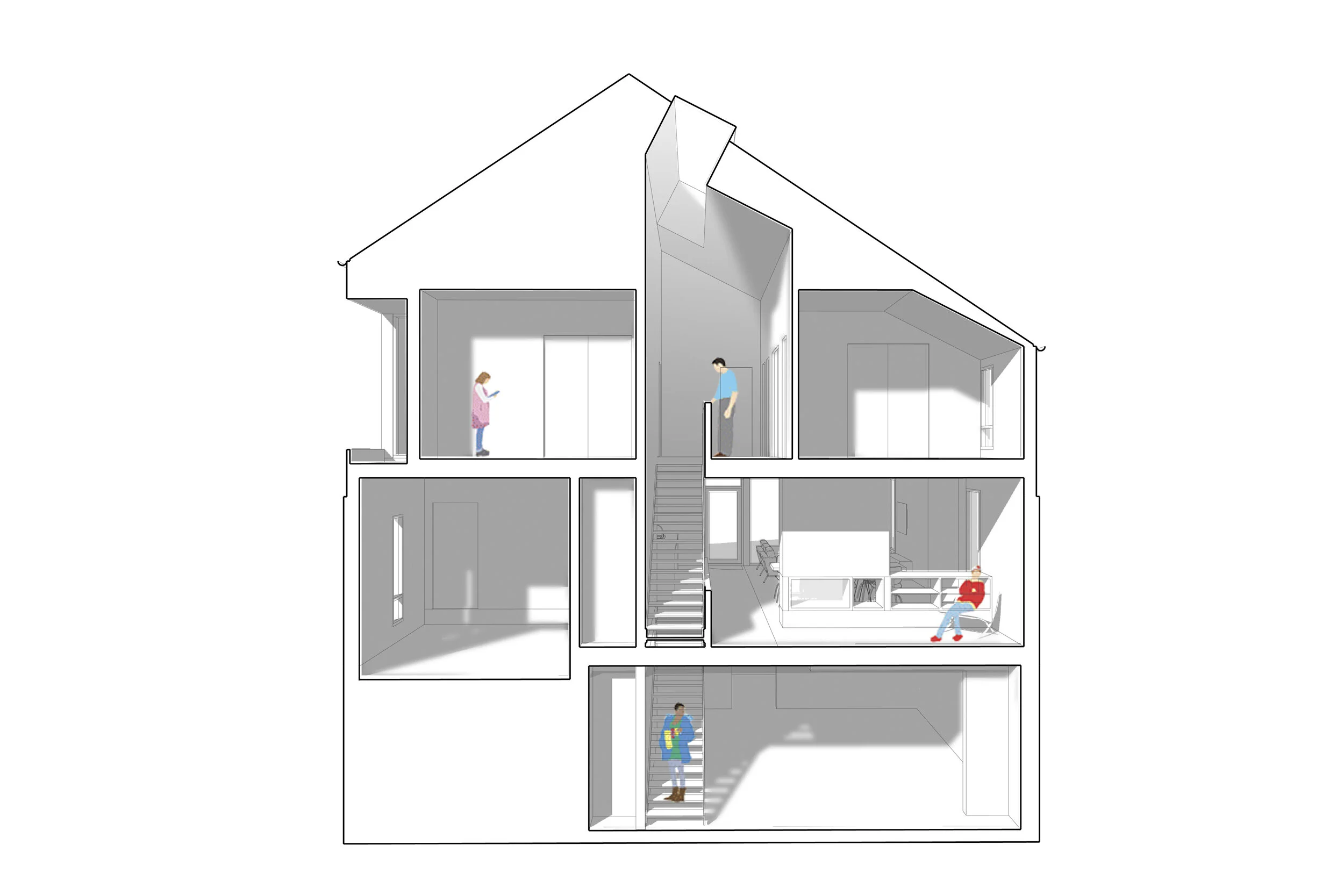 sandridge house is a two-storey infill property that maximizes functionality while quietly inserting itself into a vernacular context